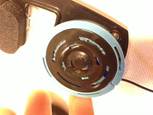 2. Blås ner i själva högtalaren snett från sidan så att du blåser bort eventuellt skit som fastnat.