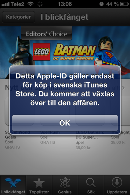Började också nästan koka när jag upptäckte att den inte bara bytte tillbaka till svenska App store när jag först försökte ladda ner nåt specifikt svenskt, typ Aftonbladet.
