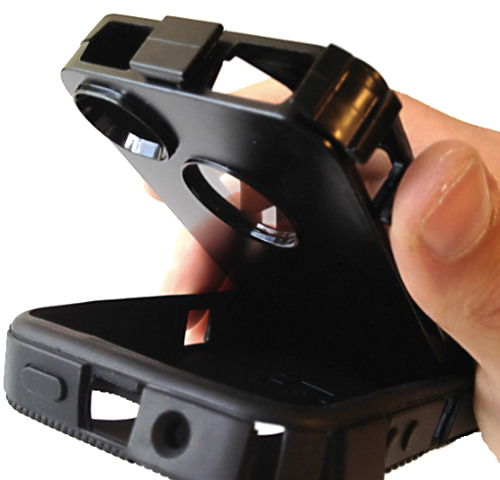 Skalet är tredelat, med ett plastskal i polykarbonat, ett silikonhölje runtom plastskalet och ett ClipStand-hölster som du kan fästa skalet i och hänga på bältet. På baksidan av skalet är gummit mönstrat vilket gör att det inte glider lika lätt, något många konkurrenter har missat.